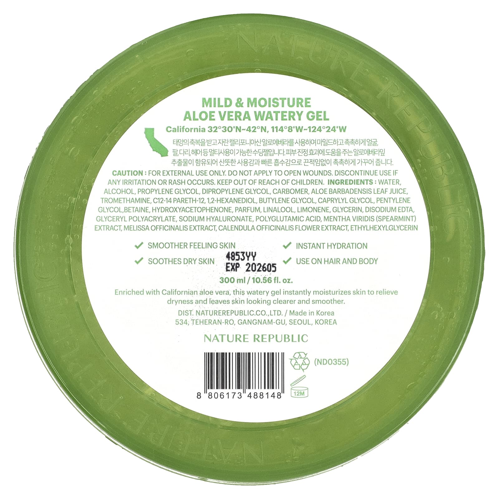 Quickly hydrate and soothe your skin with famous Korean makeup brand Nature Republic's Mild & Moisture Aloe Vera Watery Gel.