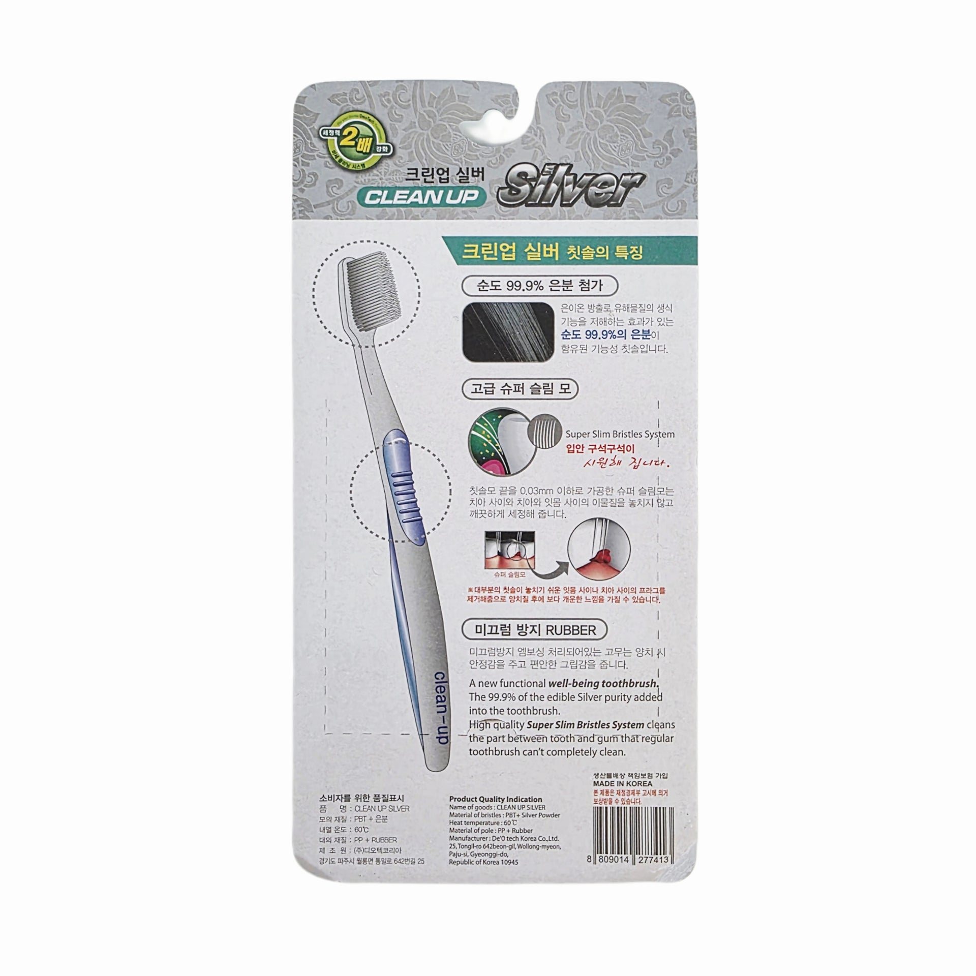 "Clean Up" Silver Toothbrushes (4-pack) - Made in Korea (Ultra-slim bristles)
