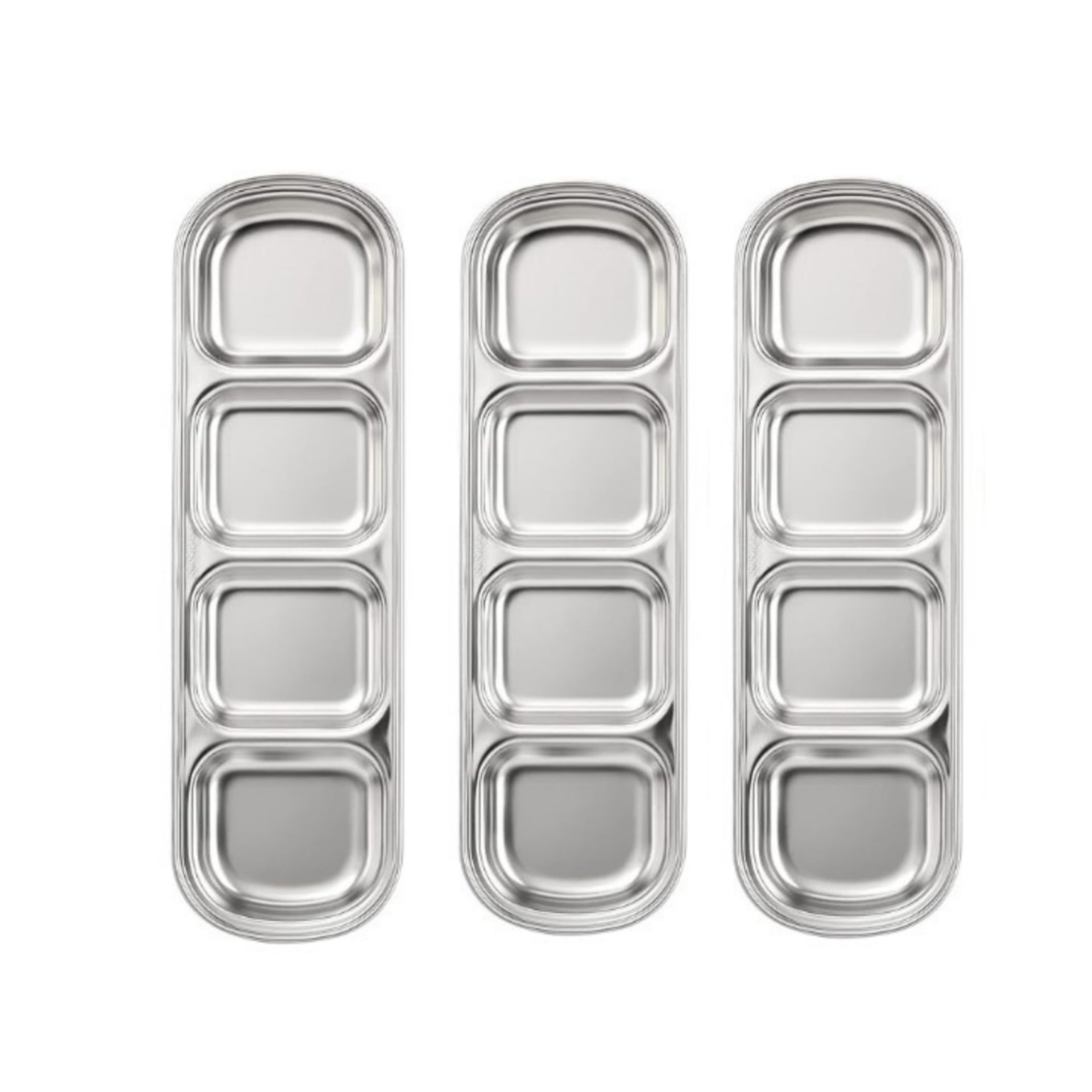 4-Partition Stainless Steel Sauce/Condiment Dipping Bowl