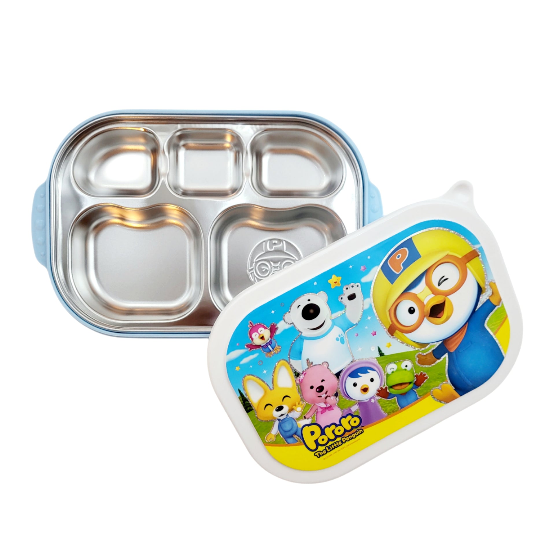 Comes with stainless steel tray (5 partition), plastic tray compartment, and plastic lid. Kids love the bright and colorful design of the Pororo characters, and parents love the utility and ease of use and cleaning.