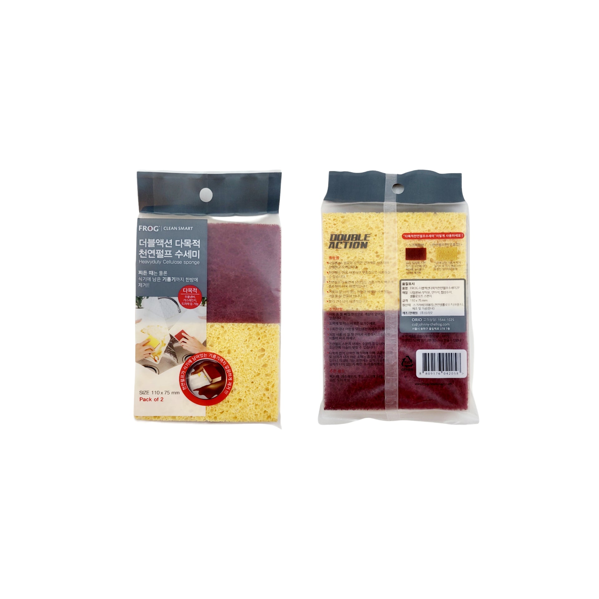 Frog Clean Smart Double Action Cellulose Sponges (2-pack) - Scrubber Made in Italy, Natural Cellulose Made in France, Produced in Korea