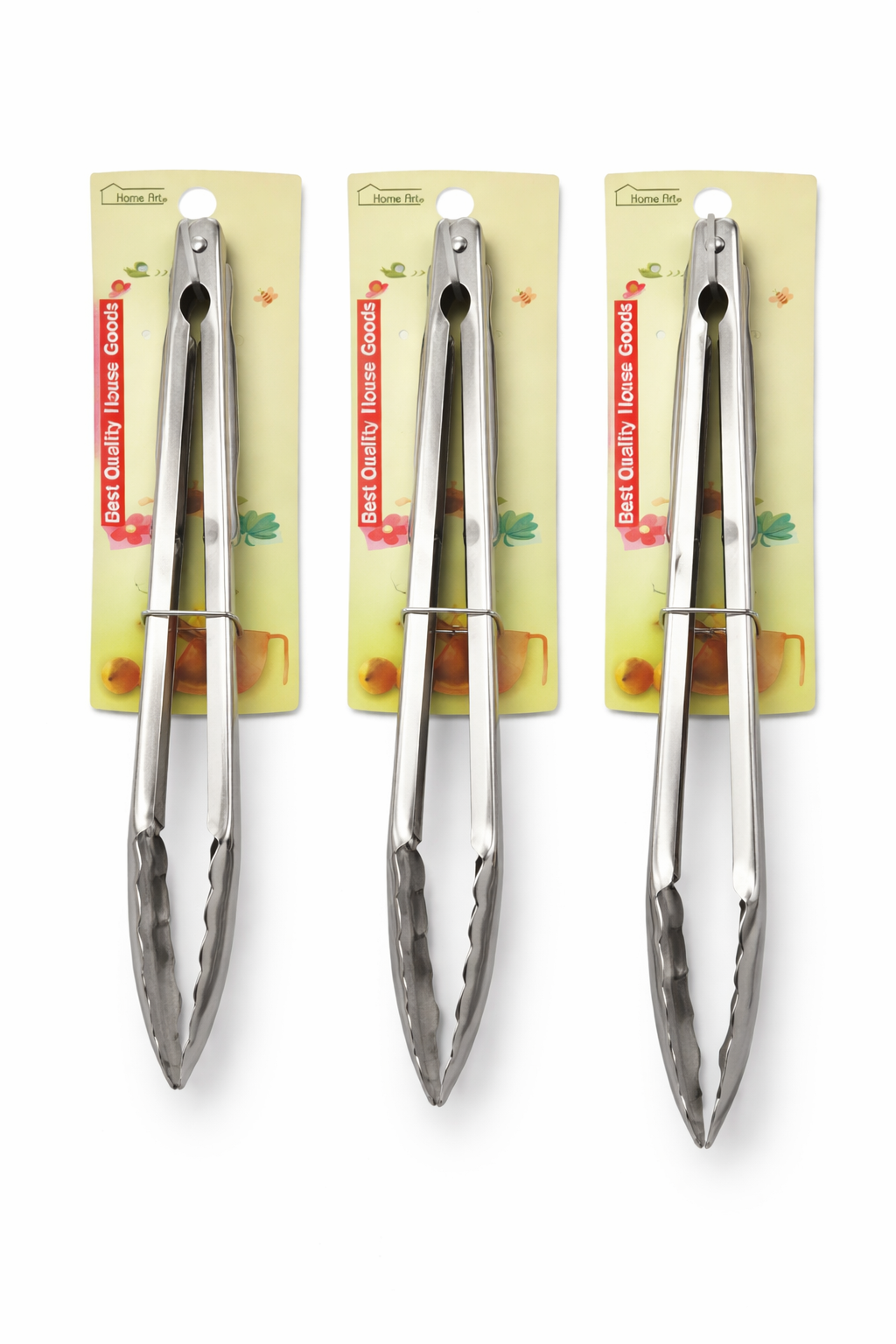 Crafted from stainless steel with a smooth locking ring mechanism, these tongs deliver confident grip tension, balanced handling, and reliable control whether you're plating pastries, serving buffet trays, or turning meats over open flame.