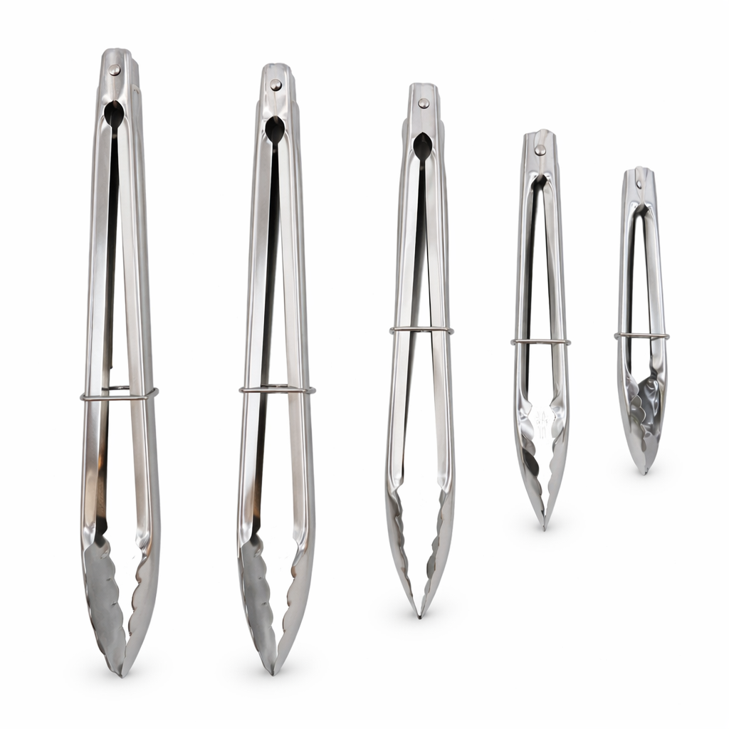 From compact serving control to extended barbecue reach, this five-size stainless steel series covers everything from indoor plating to high-heat outdoor cooking.
