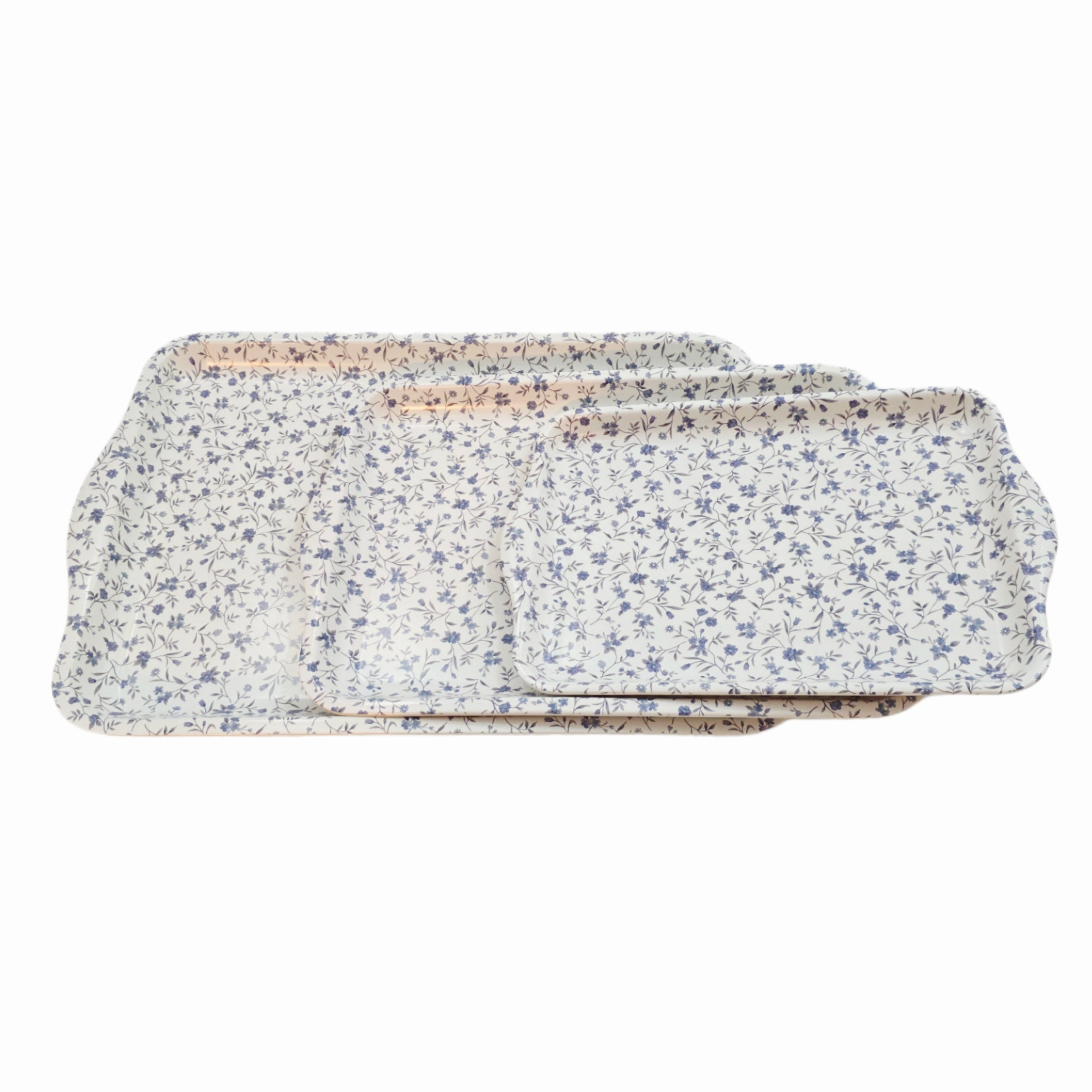 Enhance your food/drink serving with our "Royal Floral" serving trays. These melamine trays are made in Korea to ensure long-lasting quality. Elegant and durable, perfect for serving food, snacks, drinks, coffee, tea, and more. Great for homes, cafes, and restaurants, these trays feature a beautiful blue floral design.
