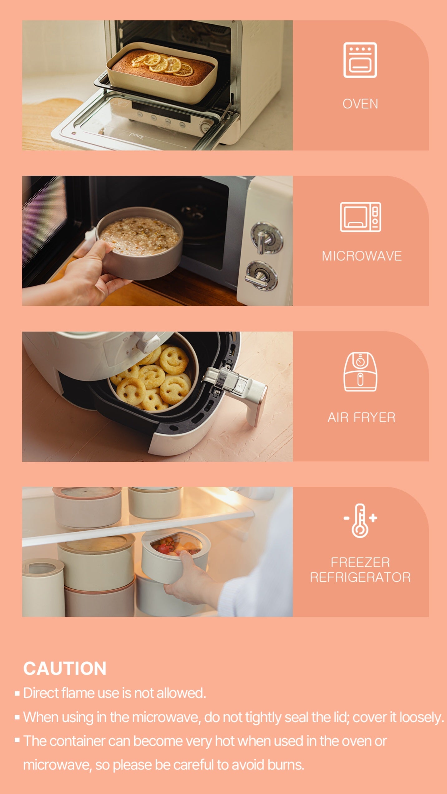 Not only are they great for storage, but they are also safe to use in the microwave (lid loosely covered), oven or air fryer (without lid), and you can serve the food in them directly, for an easy all in one solution.