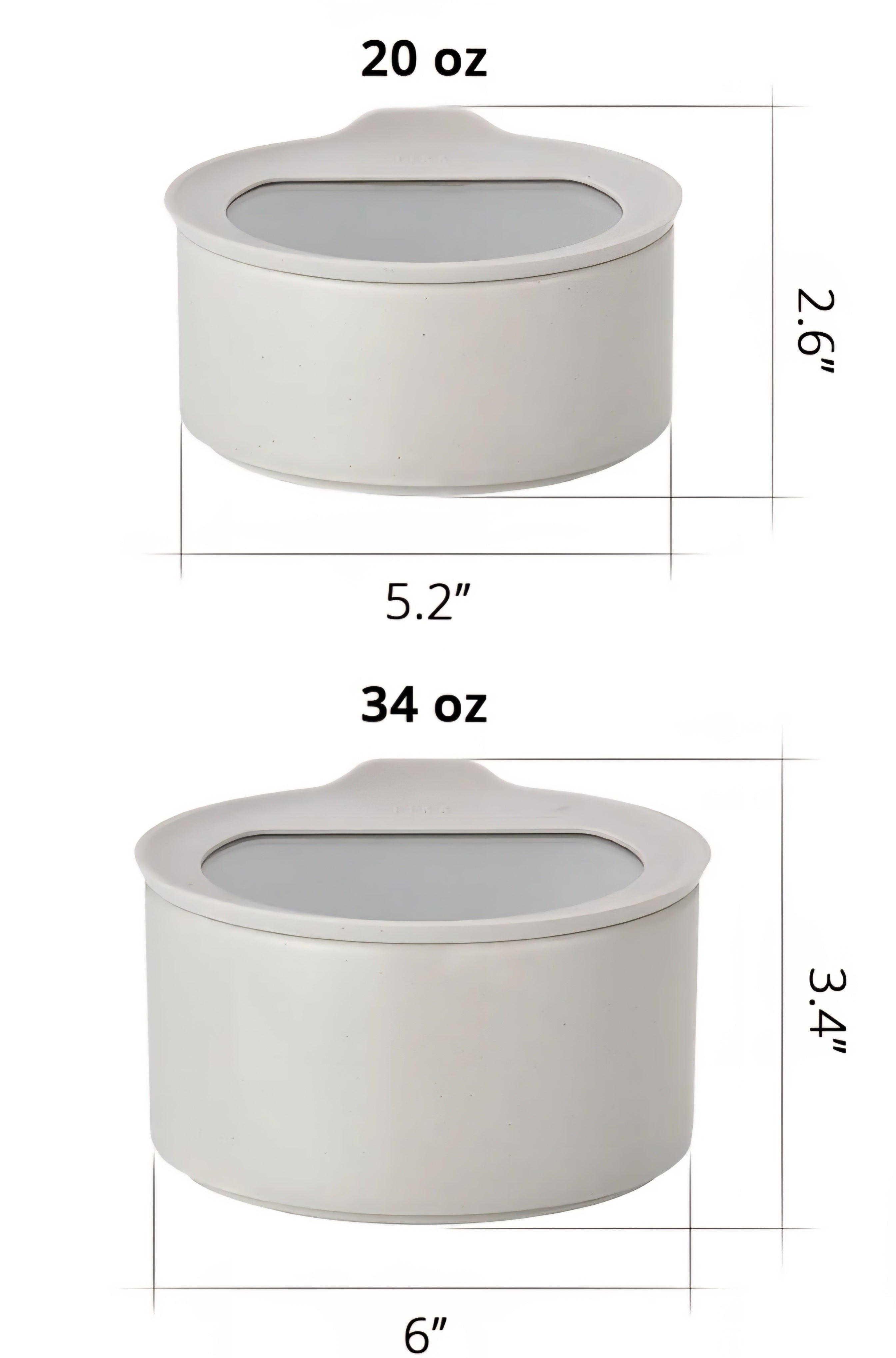 Made with a durable ceramic body, and a secure silicone lid (with see-thru tempered glass viewer), these containers create an airtight seal, while allowing you to easily view contents without opening them. The seal prevents moisture and air from entering, thus maintaining and prolonging food quality.