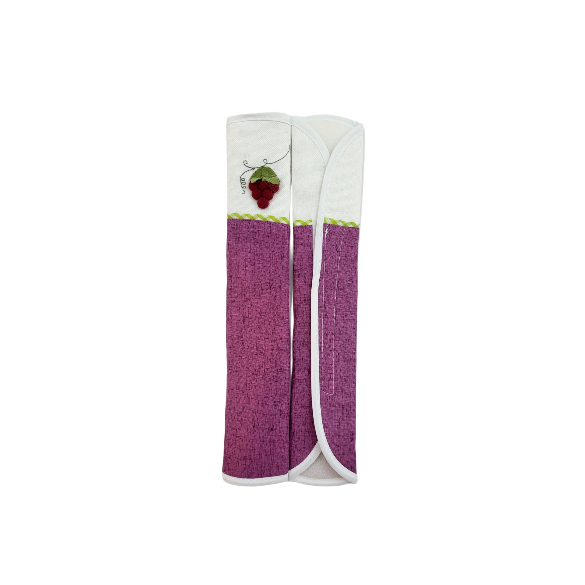 Refrigerator Handle/Seat Belt Covers Large (2 pcs - Elegant Grape Design) - Washable cloth, velcro straps